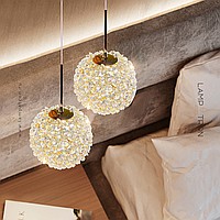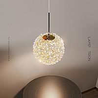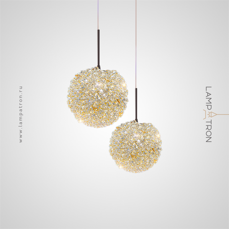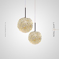 A series of pendant lamps with a spherical lampshade made of crystal elements