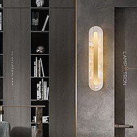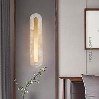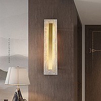 LED Wall Light with Marble Body Rectangular and Rounded Shape on Brass Mount
