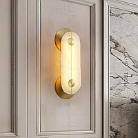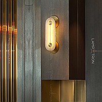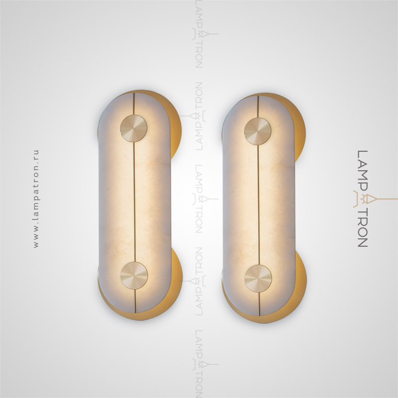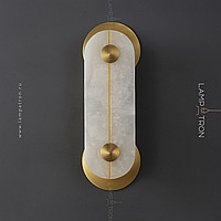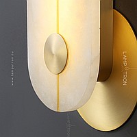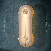 Wall LED lamp with a rectangular marble ceiling with rounded corners and two wall mounts in the shape of a disc