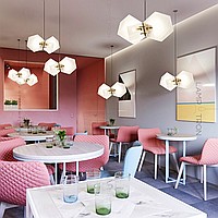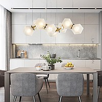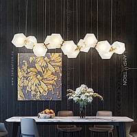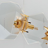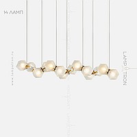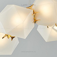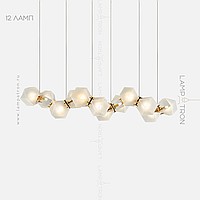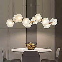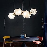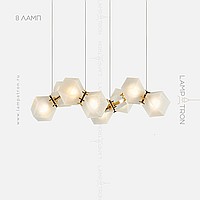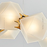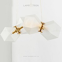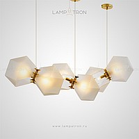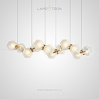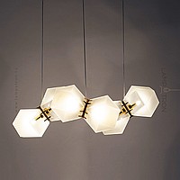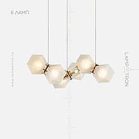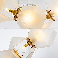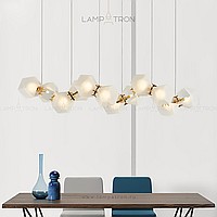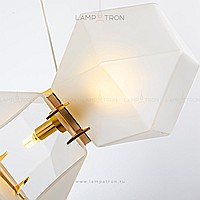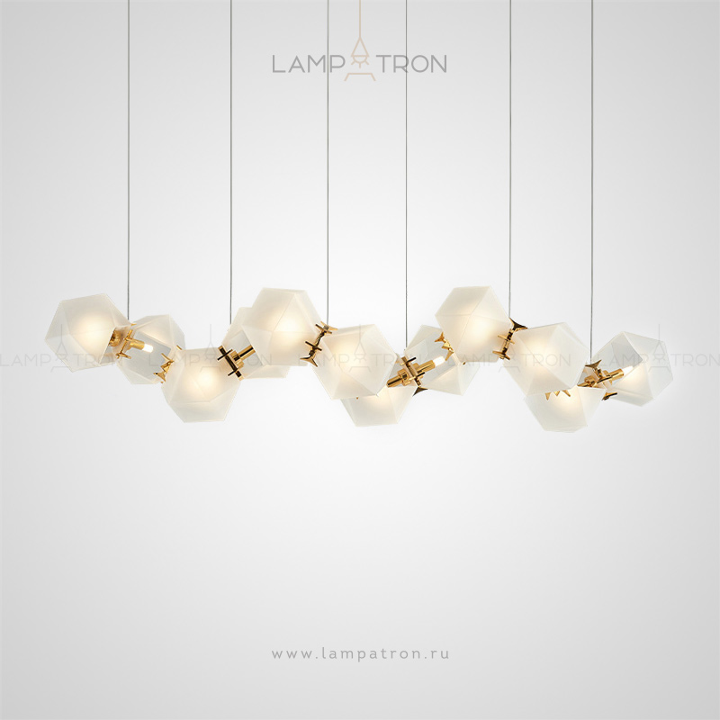 In a row lamp made of matte glass polyhedra with internal backlight