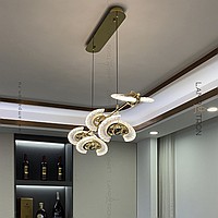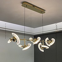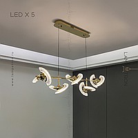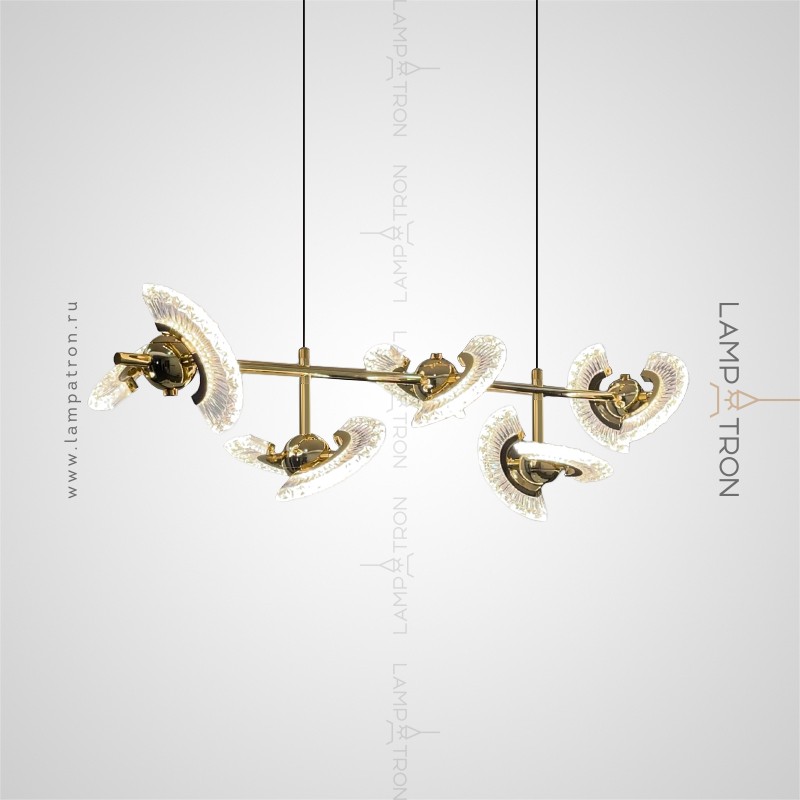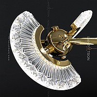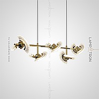 Roethe LED lamp with shades in the form of two embossed swivel blades with a spherical metal center