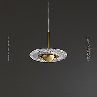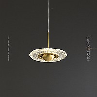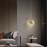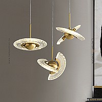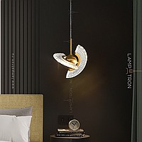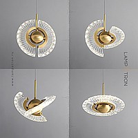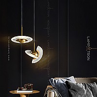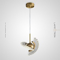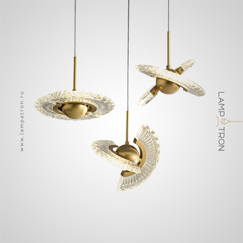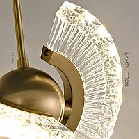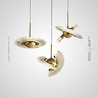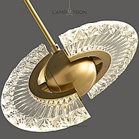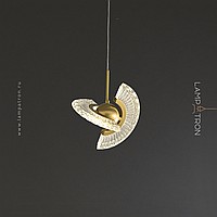 LED pendant lamp with a shade in the form of a combination of two openwork swivel blades and a spherical center