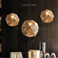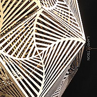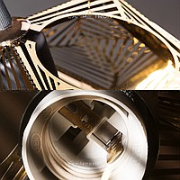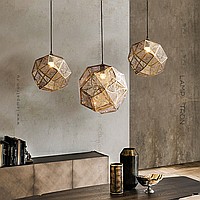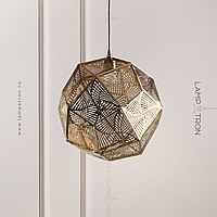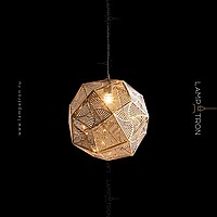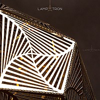 A geometric lamp made of perforated metal planes with a characteristic pattern