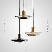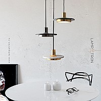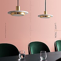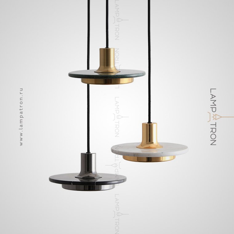 A series of designer suspensions with a lampshade of marble on a metallic base