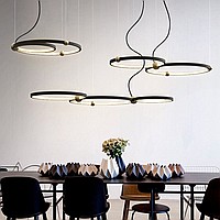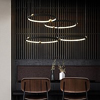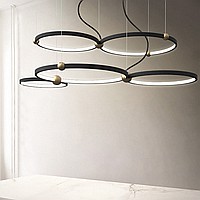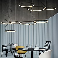 A series of suspended lamps in the form of combinations of rings with LED backlight