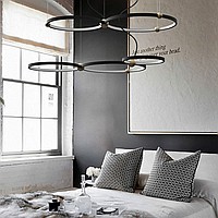 Ring LED lamps on string suspension. 3 different configurations are produced. Super style and originality, functionality and combination — all in one series!
