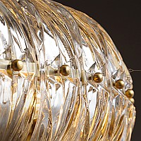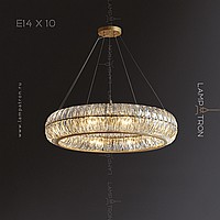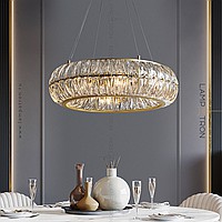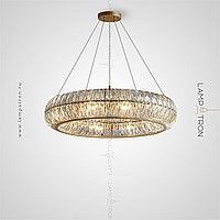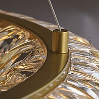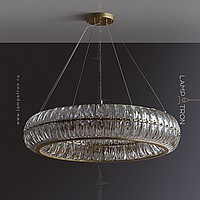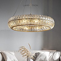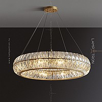 A series of ring chandeliers with a lampshade made of rounded crystal plates of rounded shape