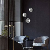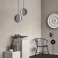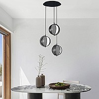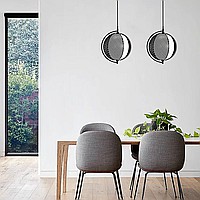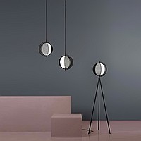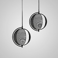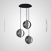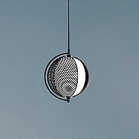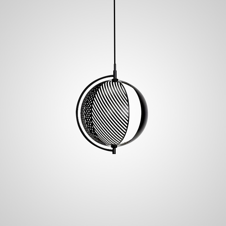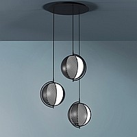 Suspended lamp with a spherical ceiling and movable sash with perforated pattern