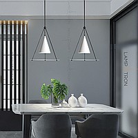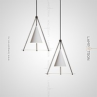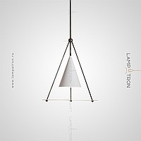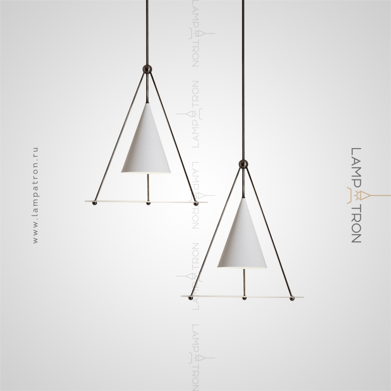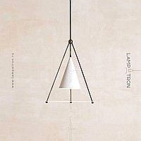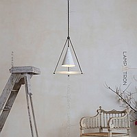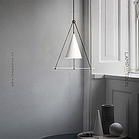 A designer suspension lamp with a conical plafon and a disco -shaped scatter on a prismatic base of metal