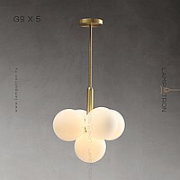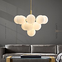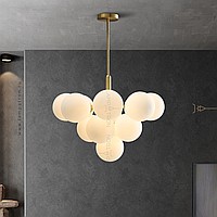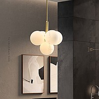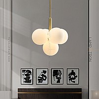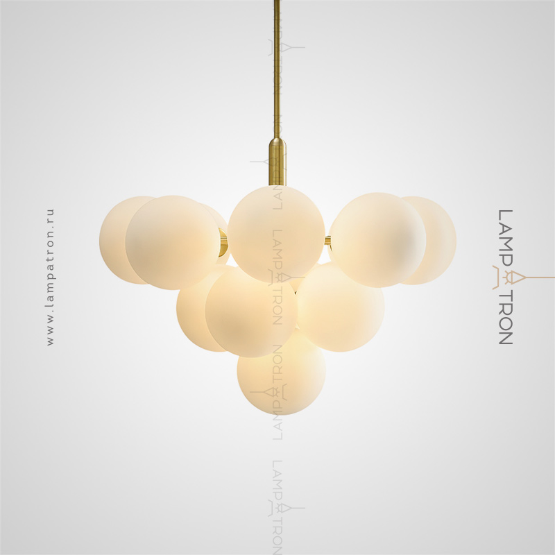 A series of chandeliers in the form of a composition of matte spherical shades