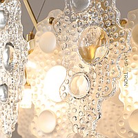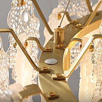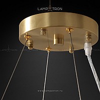A series of ring chandeliers on a string suspension with a glass dispatcher of openwork plates