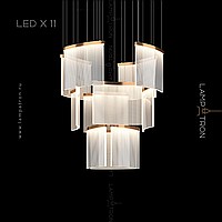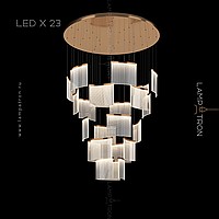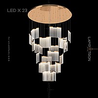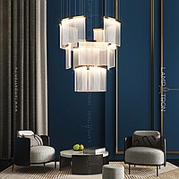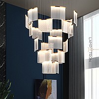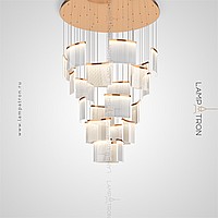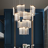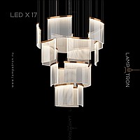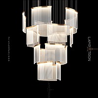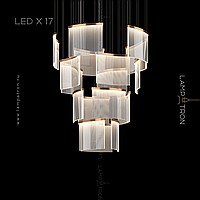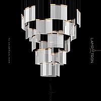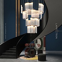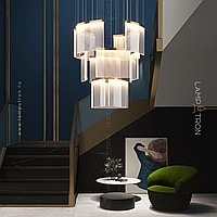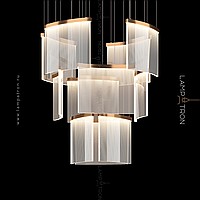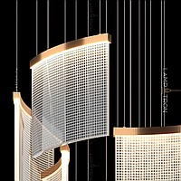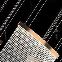 The finished cascading combination of suspended lamps with rectangular ceiling with a point and retina on a transparent surface