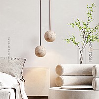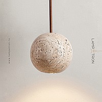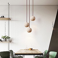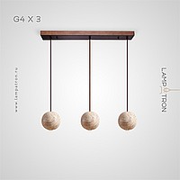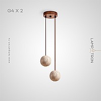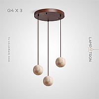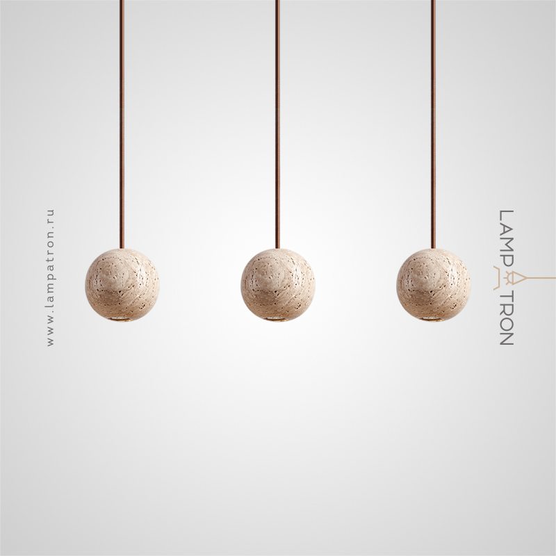 Ready-made combination of pendant lamps with a spherical body made of yellow travertine stone