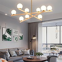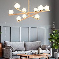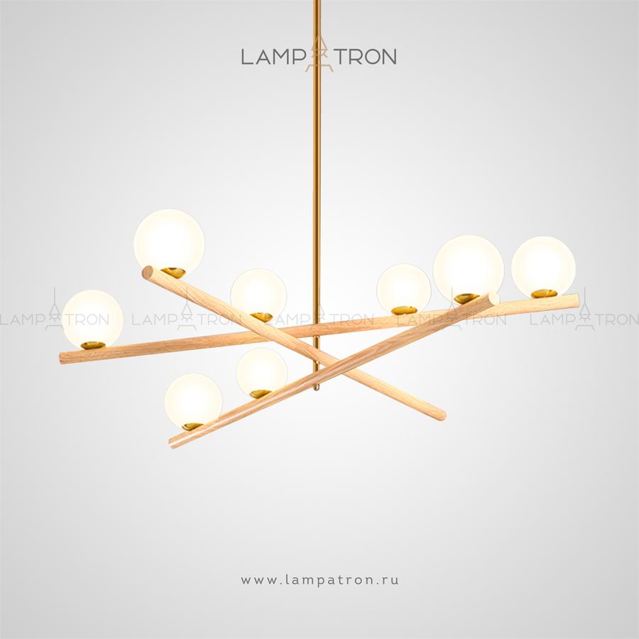 Chandelier with glass spherical ceiling on wooden crossed horns