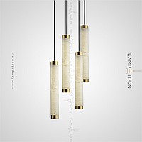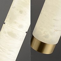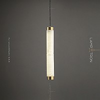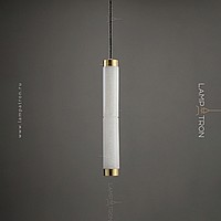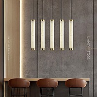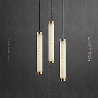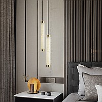 Suspended LED lamp of an elongated cylindrical shape with a ceiling of Spanish marble