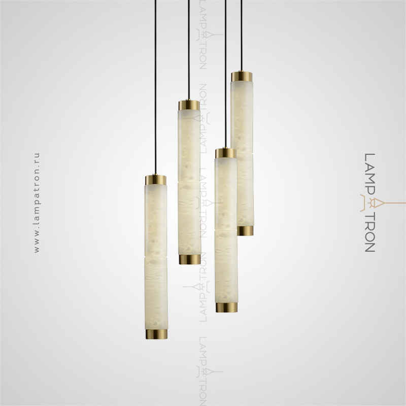 Suspended LED lamp of an elongated cylindrical shape with a ceiling of Spanish marble
