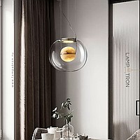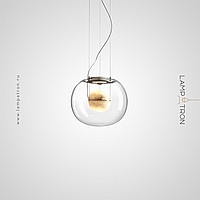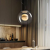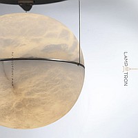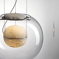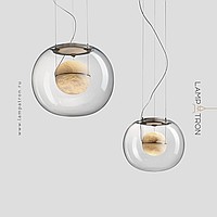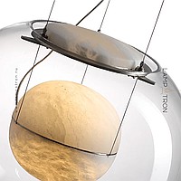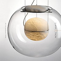 String suspension luminaire with a combined marble disperser body inside a glass sphere