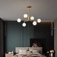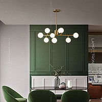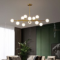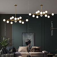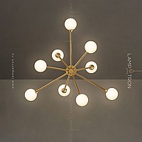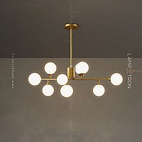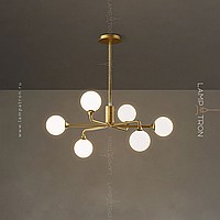 A series of designer chandeliers with spherical glass ceiling on a radial frame