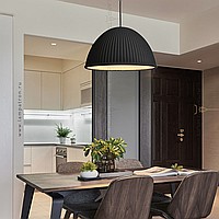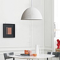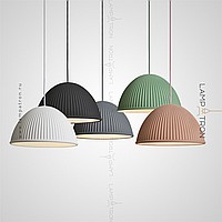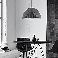 A modern lamp in the Scandinavian style in the form of a corrugated hemisphere. Ideal for placement in a kitchen space or stylish bedroom, as well as for use in a restaurant-coffee ground.