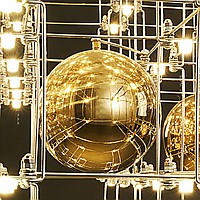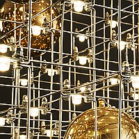 Designer chandelier with point springs and decorative balls on a lattice frame
