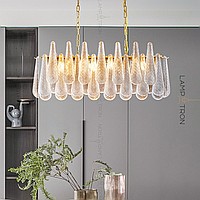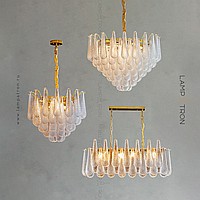 A series of rack lamps with cascading lampshades made of glass -shaped glass pendants