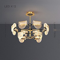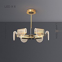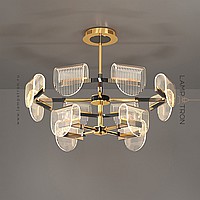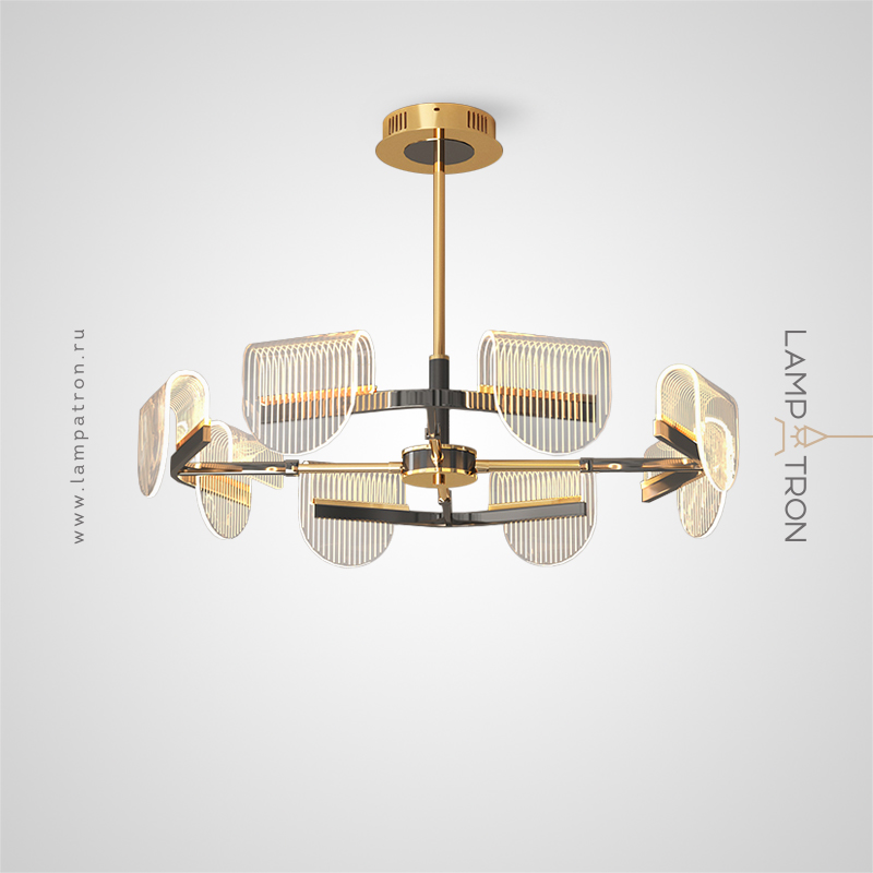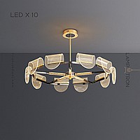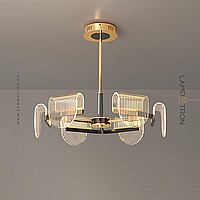 A series of LED chandeliers with curved diffusers of a rounded shape with linear engraving