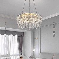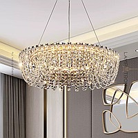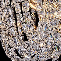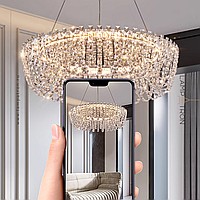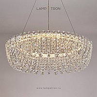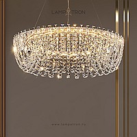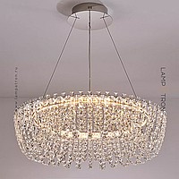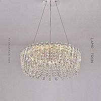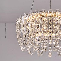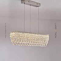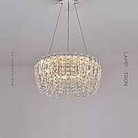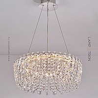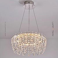 A series of designer chandeliers with décor made of pendants made of square crystal plates