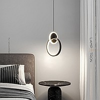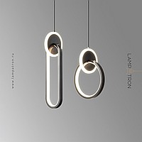 A series of pendant LED lights in the form of a combination of a luminous ring and a disc