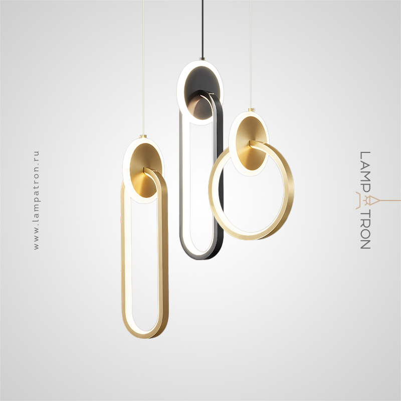A series of pendant LED lights in the form of a combination of a luminous ring and a disc