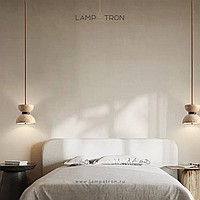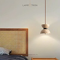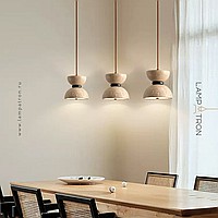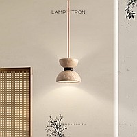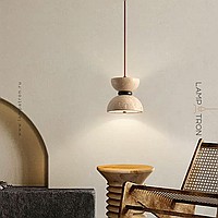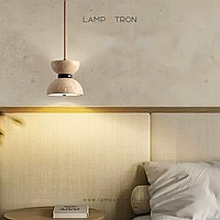 Pendant lamp with bidirectional dome shade in travertine stone