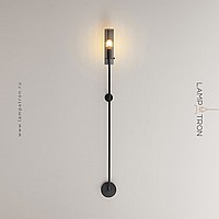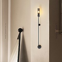 Sconces on a high stand with a cylindrical shade made of fluted glass