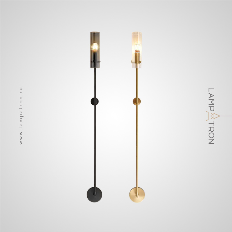 Sconces on a high stand with a cylindrical shade made of fluted glass