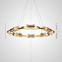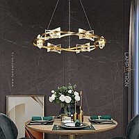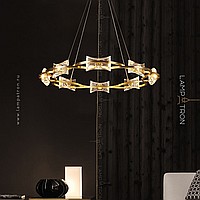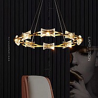 A series of ring chandeliers with transparent ceiling in the form of quadrangular crystal ingots