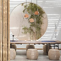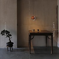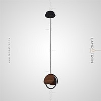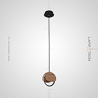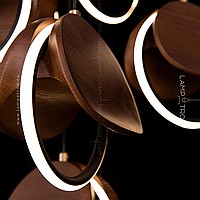 Suspended lamp with round wooden overlays on the LED ring