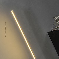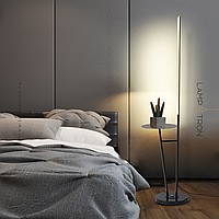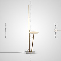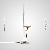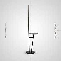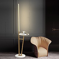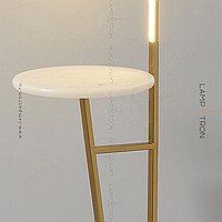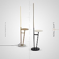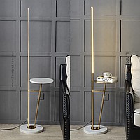 A series of floor lamps in the form of a combination of a rectangular rack with LED lighting and a item of metal and marble