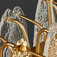 Lamp of an elongated wave -like shape with a decor of glass petals with a curly surface
