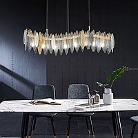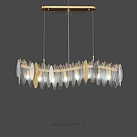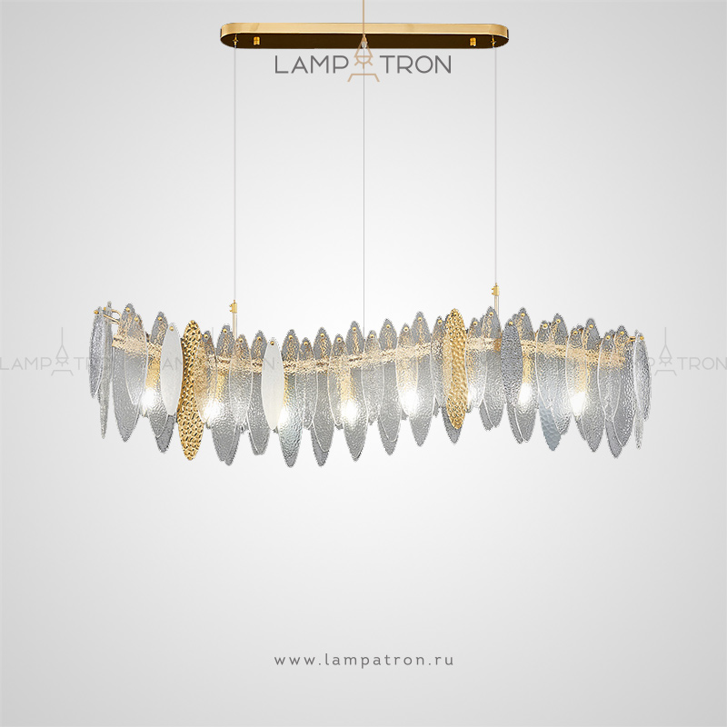 Lamp of an elongated wave -like shape with a decor of glass petals with a curly surface