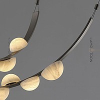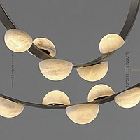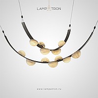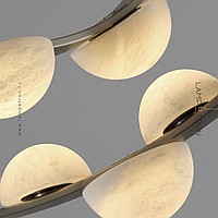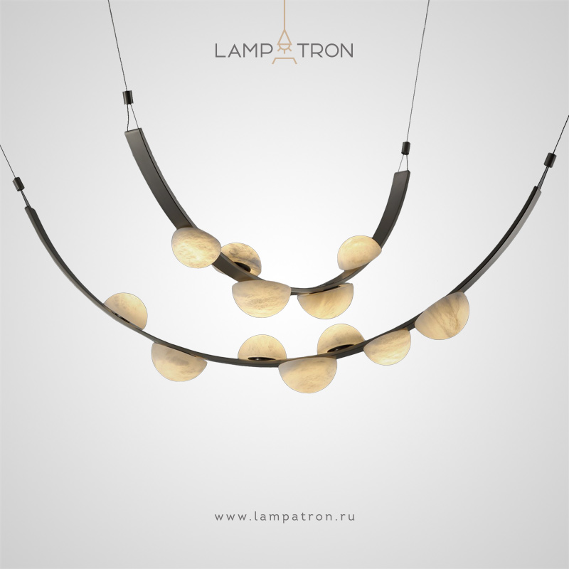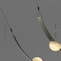 Composition of pendant lamps with semicircular marble diffusers on a U-shaped strip metal base