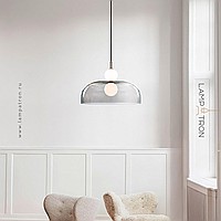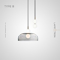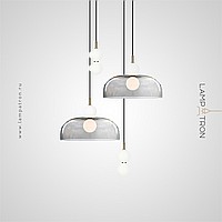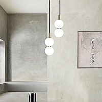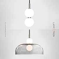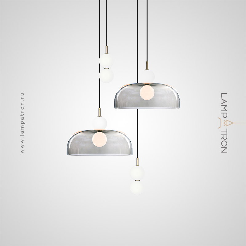 A series of pendant LED luminaires in the form of a combination of a glass diffuser and spherical shades
