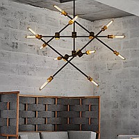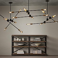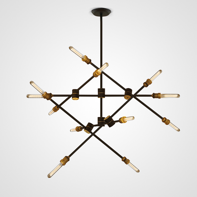 Metal chandelier with rotating rods in an industrial style