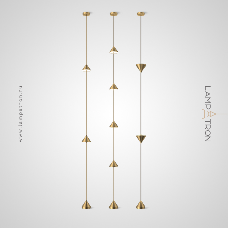 A series of pendant LED luminaires with multidirectional conical diffusers