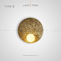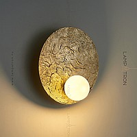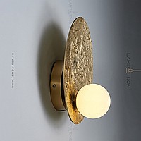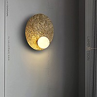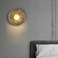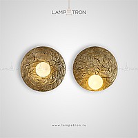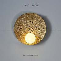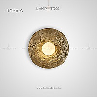 Wall lamp in the form of a metal disk with a susal gold effect and a spherical ceiling