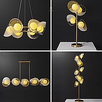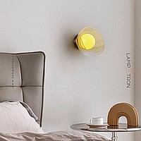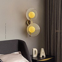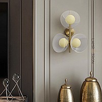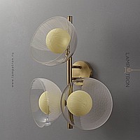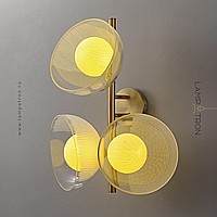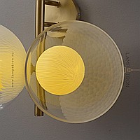 Wall lamp series with creamy yellow spherical shades inside glass dome diffusers of different textures