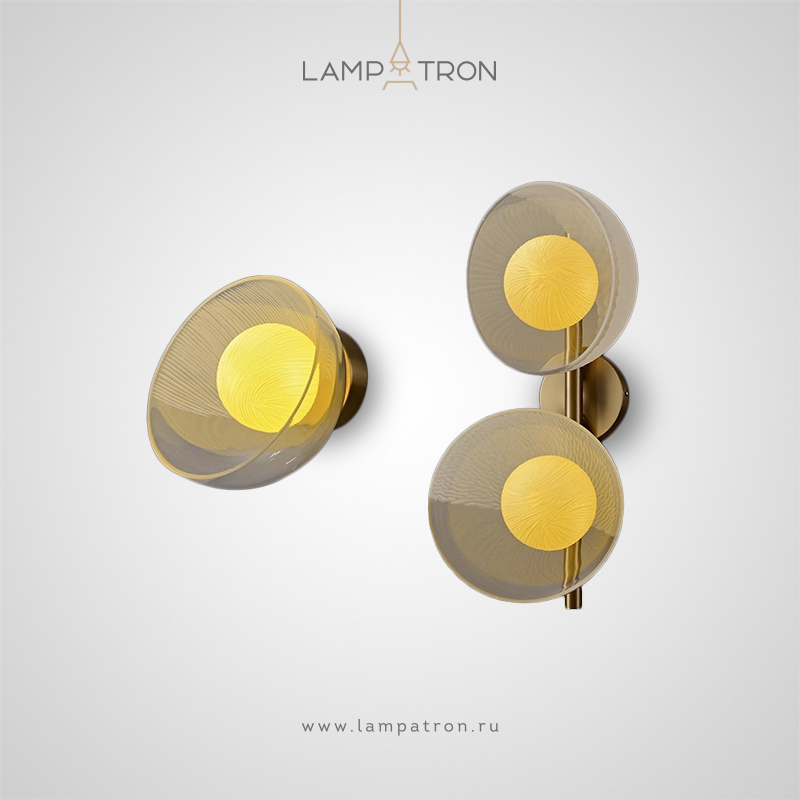 Wall lamp series with creamy yellow spherical shades inside glass dome diffusers of different textures