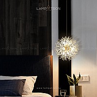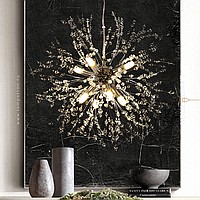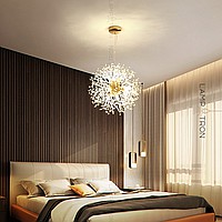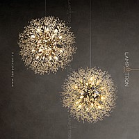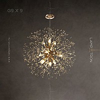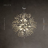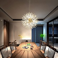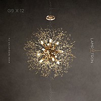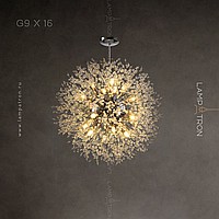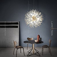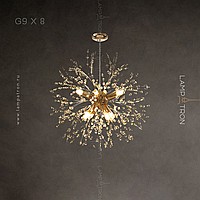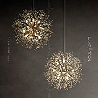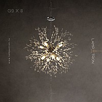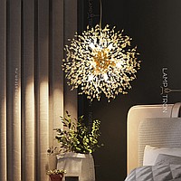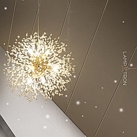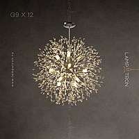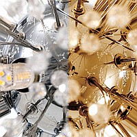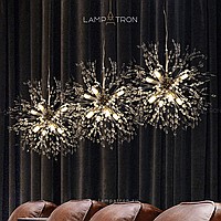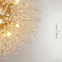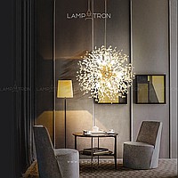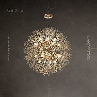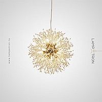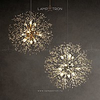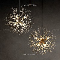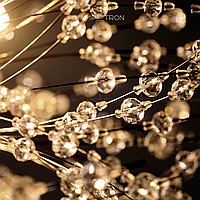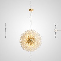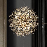 Designer chandelier in the form of a ball made of crystal beams with a metal center