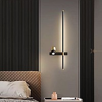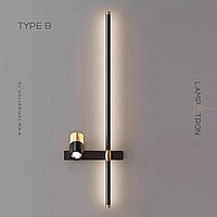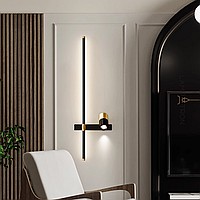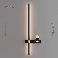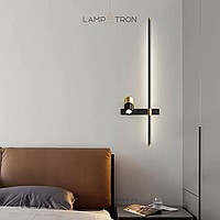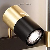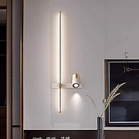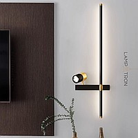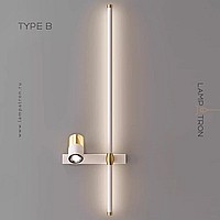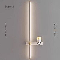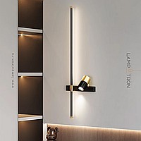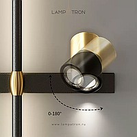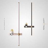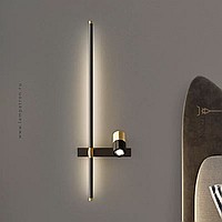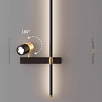 A series of twin wall lamps in the form of a rod with LED lighting and a swivel spot on a rectangular mount