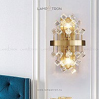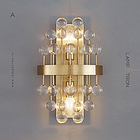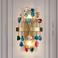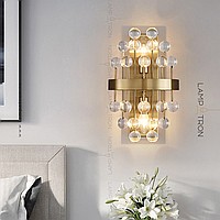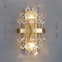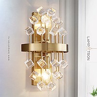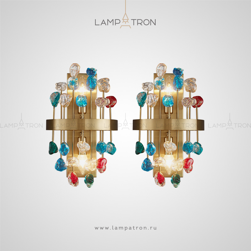 A series of wall lamps with decorative glass stones of cubic, spherical and irregular shape
