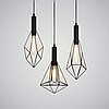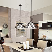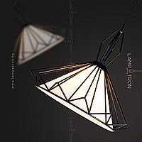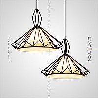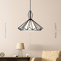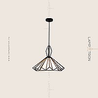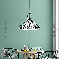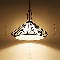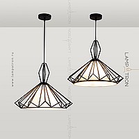 Suspended lamp with conical white plafon in a metal -shaped metal frame