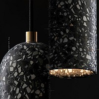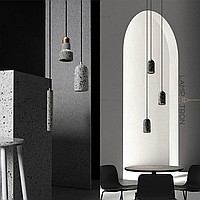 A series of suspended lamps with cylindrical ceiling ceiling marble