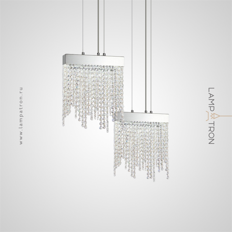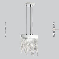 Pendant lamp with pendants made of crystal beads on a chrome base